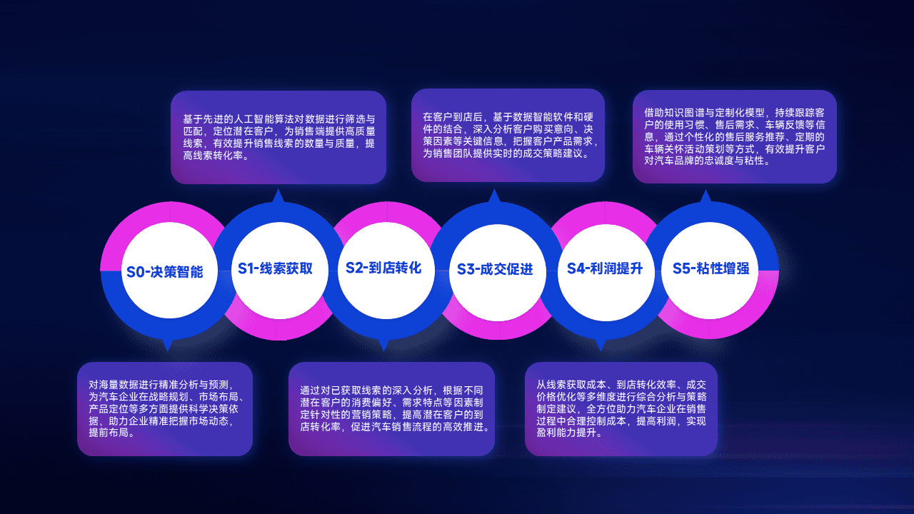 通过拓宽潜在客户来源、、、优化线索分配并提高到店转化率,,以增强销售效率。。。。同时,,,,利用线索数据不断优化分析模型,,有效提升转化率,,,,扩大营销影响力。。